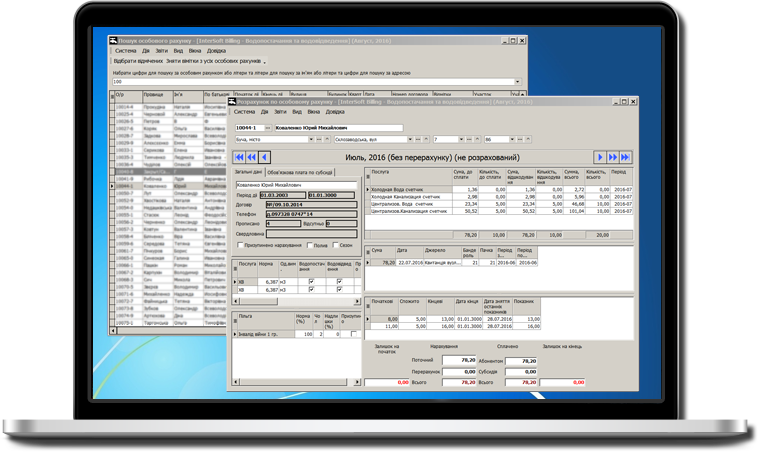 Особистий кабінет - кожен абонент не виходячи з дому може звірити рахунок, внести показаники по лічильникам, роздрукувати рахунок на сплату та ін.